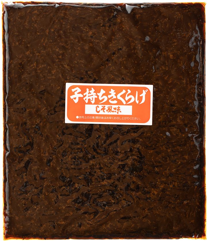 - 醤油、砂糖、きくらげ、魚卵、発酵調味料、しその実、醸造酢、風味調味料、食塩、ソルビット、調味料(アミノ酸等)香料、保存料(ソルビン酸K)、甘味料(ステビア)、酸味料、(一部に大豆・小麦を含む)