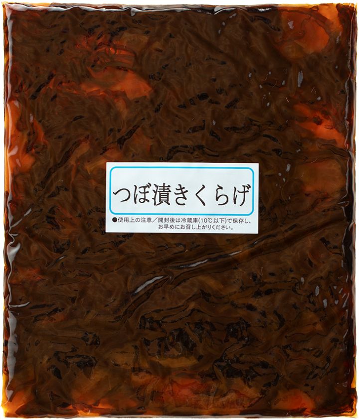 しゃきしゃきとした大根のつぼ漬と歯応え自慢のきくらげを、バランスのとれた味付けにより炊き合わせ、佃煮にしました。